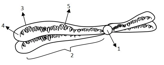 Bagian nomor 1 menunjuk lengan kromosom yang terikat satu sama lainnya disebut dengan kromatid. Nomor 2 menunjuk bagian tengah yang mengikat lengang kromosom disebut sentromer. Untuk nomor 3 menunjuk bagian benang melingkar dalam matriks kromosom yang disebut kromonema.