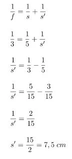 Jarak sebuah benda ke cermin cekung adalah 5 cm. Jika diketahui cermin tersebut memiliki nilai fokus 3 cm, maka bayangan benda tersebut terletak pada jarak ….